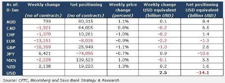 Currency traders, such as hedge funds and other large money managers, went net-short the EUR during the week ending January 8 according to the latest data from the CFTC. The selling occurred just ahead of the major push higher in EURUSD and shows what a tricky start to the year these first couple of weeks have been. Likewise the JPY net-short was scaled back for a fourth week despite the continued weakness seen in USDJPY.
