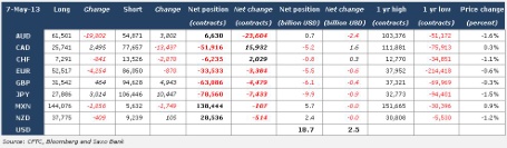 Hedge Funds were already busy buying dollars ahead of the Thursday spike during the week ending May 7 according to the “Commitment of Traders” report from the US Commodity Futures and Trading Commission. The dollar gross long position against eight IMM currency futures tracked in this report rose by 15 percent to USD 18.7 billion with all currencies apart from CAD and CHF seeing net-selling, especially AUD and JPY.