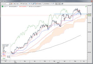 The squeeze on the JPY shorts is on after a very ugly US ISM Manufacturing report (49.0 vs. 51.0 expected and 50.7 last month, particularly surprising after a very strong Chicago PMI on Friday). The reaction was quick and intense as it deservedly derails the market theme that the Fed is headed for a tapering of asset purchases sooner rather than later. The technical implications of a move back through 100.00 in USDJPY were also unmistakable. From here, if US data remains weak through the end of the week and bonds remain on the bid and risk remains off, the USDJPY correction could take us to at least the Ichimoku daily cloud level, which rises to about 97.40 tomorrow. Still – it’s a nervous market and conflicting data means two-way volatility is the danger.