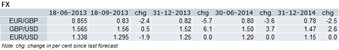 Our main scenario is a broad-based USD strengthening in the longer end of our forecast horixon due to Fed tapering and relatively stronger US growth. The USD strengthening is also expected against the GBP. However, we still expect the GBP to outperform the EUR because of stronger growth and higher rates.