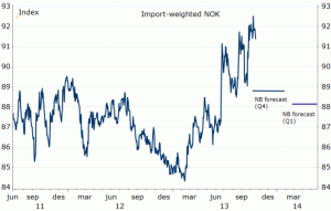• Norges Bank favourite measure for unemployment (registered excl. those on labour market measures) increased by 1 100 persons in September. The level is still not higher than its 2013 forecast implies, but its 2014 forecast will be too low if unemployment continues to increase at this speed.