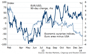 Big in Japan… or bigger? More QE signals are expected from the BoJ near term, meeting Wednesday. The 3% pt tax hike in April will be headwind for the economy in Q2. BoJ’s Kuroda indicated a “yes” to more easing recently, but only “if needed” – so don’t put the cart before the horse. And it could be more challenging this time around. Notable US Treasury Secretary Lew’s comments last week: “We still have to see what the so-called third arrow of their policies are <…> long-term growth can’t be rooted in…reliance on unfair advantage because of exchange rate.” After JPY weakening 20%-25% vs USD and EUR last year, and US, EMU struggling with low inflation (e.g. import price from Japan at -3.4% y/y in Dec, lowest since 2002), do you seriously consider it likely for them (read: G10) to accept (read: close eyes to) another round of massive JPY weakening? Especially when we see softer cyclical survey/growth data. Holding USDJPY short (from 105).