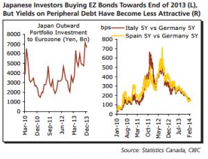 “Over the past year or so, investors looking for better yields have been able to find it in Eurozone peripheral debt. The first few brave souls profi ted very well. But then the idea went global, and as a result the spread between peripheral bond yields and bunds is now not that much higher than it was before the Eurozone crisis escalated,” CIBC notes.