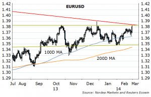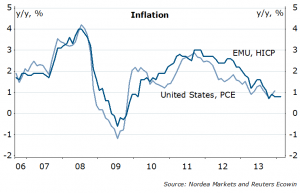 For once, the US ISM print is no less interesting than payrolls. Regional surveys suggest a drop to 50.5 from 51.3. Remember my most important chart of the year I contributed to Business Insider in December (Figure 4)? Fed’s Kocherlakota was talking on Friday, hinting that the sharp rise in rates last year could have been one reason for data weakness (Figure 5, but read all). Payrolls this week (Nordea: 130k, consensus: 150k). Remember the drill: bad – weather. Good – economy. Just don’t be too surprised if good news will lift the stocks and the EURUSD. The unemployment rate is close to hitting 6.5%, but hey: “the 6.5 percent threshold will soon become irrelevant, and it probably is already.” (Plosser on Friday). Not the first time they do it: remember, just last May Bernanke suggested QE would stop by the time we hit 7%? Credibility…