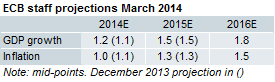 The new staff projections for inflation showed a slight downward revision for this year, as widely expected, but an unchanged medium-term outlook based on the 2015 forecast. Moreover, the new projection for 2016 was put at 1.5%, which seems fairly low, but Mr Draghi put the Q4 2016 at 1.7%, which seems more in line with our view.