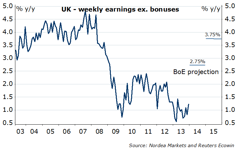 Speaking of the UK…the all-important employment report is out this week. Looks like the unemployment rate will again be 7.2%, but, as noted before, what the BoE is really after is productivity growth and wage growth. The latter, they have quiet an ambitious forecast for these coming years: we have seen an uptick from the 1% rate last year, but it is barely enough to live up to the expected rates yet. The GBP seems peak-ish broadly, though could still strengthen against USD short term, mostly on USD weakness (1.6600 key on the downside). Hold the EURGBP long from the second entry (0.8207) – has room to go to 0.8650, but first need to take 0.8450.