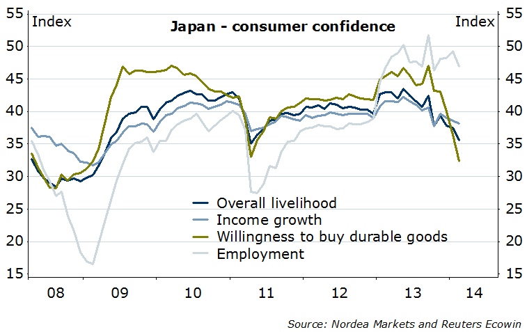 Japanese consumers not happy… because, logically, higher inflation means you buy less stuff! Not good news for the Japanese stocks, neither the USDJPY… More easing? So far the BoJ seems unbudged, judging from Kuroda’s et al. comments. Thus: it must get worse before it gets better. Holding the USDJPY short, we are going toward double digits, clearing the next support at 101.20 on the way.