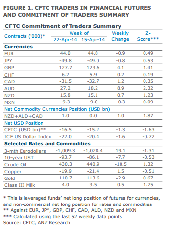 “This is the sixth consecutive weekly increase in net long positions, taking it to the highest level since late April 2013. The last time positioning was this high, AUD was trading above parity. However, the positioning cut-off date was prior to the release of weaker than expected Australia CPI data, which resulted in a weakening of the AUD. Some reduction of AUD long positions likely resulted since.” ANZ clarifies.