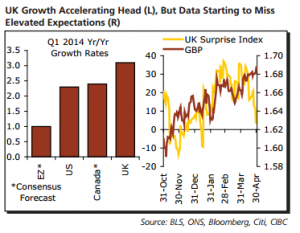 In this regards, CIBC World markets thinks that while the UK GDP data was enough to see GBP/USD touch 5-year highs. it also highlighted potential problems for sterling ahead.