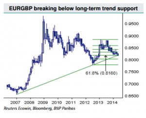 “We initiated a short EURGBP trade recommendation at 0.8140, with the target set at 0.78 and the stop at 0.8265,” BNPP clarifies.