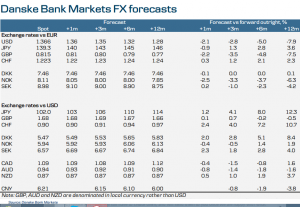 We have kept our USD/JPY forecast unchanged and still target USD/JPY at 106 in 3M, 110 in 6M and 114 in 12M. However, we highlight that weak economic growth has increased the probability of the BoJ easing earlier.