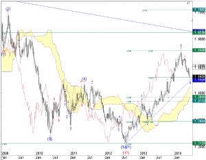 A decisive break below 1.4464 would on the other hand constitute a game change in favor of a much deeper IInd.-or B-wave setback to 1.3858 (50 %) and to 1.2945 (76.4 %) at a later stage.