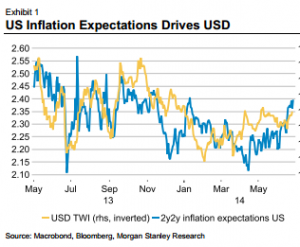 However, matters will change should US inflation pick up from here. Then global deflation pressures will ease, breaking the trend of mean reverting currency markets pushing volatility higher. US inflation expectations as measured by the 2y2y have reached their highest level since January. FX markets should take notice.