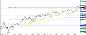 Looking at the big picture there is now nothing left in terms of resistance up to 1.7332, followed by 1.7768 (50 %/C = A). Only two consecutive lower hourly closes of the lagging line below the Ichimoku-cloud (currently at 1.7011) and a decisive hourly close below 1.6988 (minor 38.2 %, i.e. below 1.6960) would now question this bull-view.