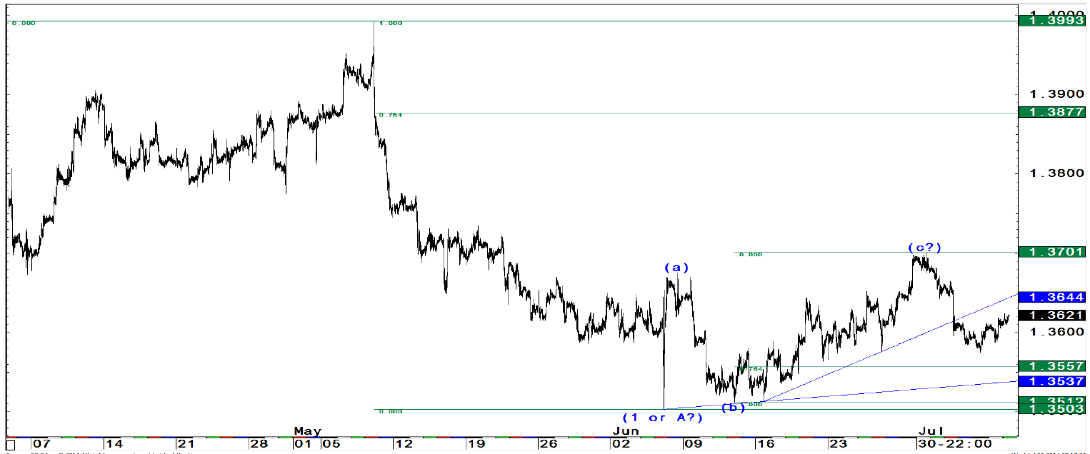 The failure to even come close to 1.3877 (minor 76.4 %) and the following break below hourly trend line support (now resistance at 1.3644) leave the market at risk of testing 1.3477 (2014 low) straight away.