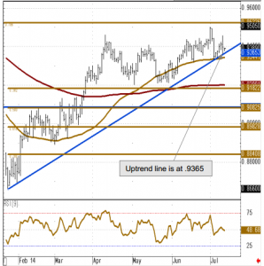 “The next lower 55d ma and July 3rd low at .9344/30 are now in focus. We continue to suspect the market will now ease lower. We favour losses to the .9203/00 May low and 200 day ma,” CB projects.