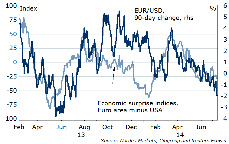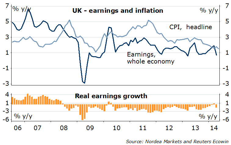 Real wage growth is what matter’s for UK’s economy: we get both data components this week. Remember, previous consumer price and wage inflation prints disappointed; one more miss would postpone rate hikes (currently first full hike early 2015 priced in). Will the BoE indeed be the first to hike, or first to disappoint? The GBP long positions remain stretched, bias to sell GBP vs EUR…but may be still a month or so too early, as difficult to see volatility exploding here. It just never does before it does.