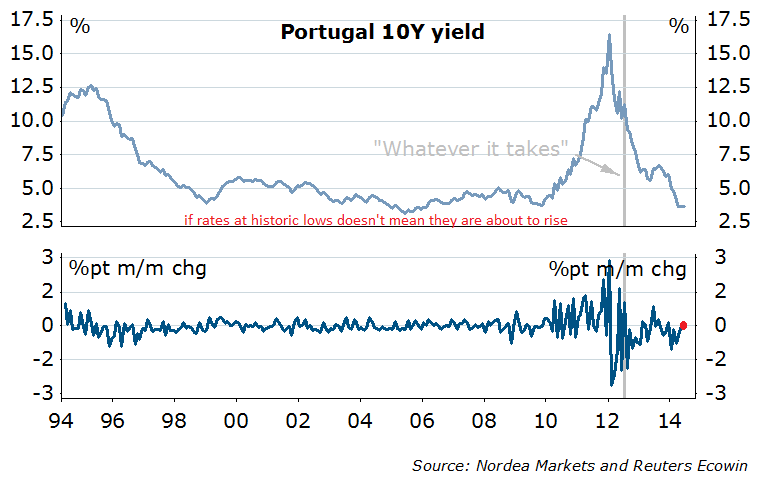 Beating the dead horse – Portugal last week. Such “sell offs” in periphery are not a surprise, especially after such dramatic falls seen in the months before. Remember, even in the old abnormal, peripheral yields widened sometimes – yes, they did. But guess what, now we also have Draghi’s “whatever it takes”. So please, move on.