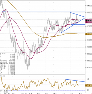 AUD/USD is under pressure in its range, the intraday Elliott counts are neutral to negative and we suspect that we are now less likely to see a recovery to the.9505 July high and .9523 Fibonacci retracement.