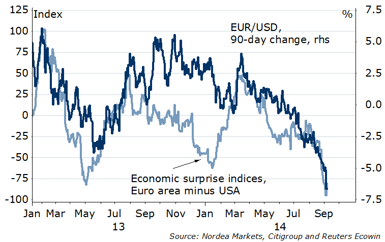 GBP to weaken further, with Scottish indepdence – yet another risk; Draghi’s soft currency guidance keeps EUR under pressure, but now that EUR rates are at lows, the EURUSD will increasingly depend on the USD side…