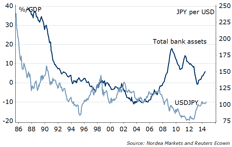 It is almost two years now since the call “JPY – the years of strenght over”. Looking back, the Japanese yen corrected the post-Lehman overshooting, and has resumed the weakness in summer. The USDJPY has broken to new highs. Why, and what happens next?
