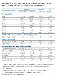 Despite the intensifying focus on the upcoming Scottish referendum and the sharp decline in sterling, we saw little change in overall net positioning in GBP. The outcome of the referendum looks like a coin toss at this stage, and market positioning will likely shift sharply depending on the results of the vote on 18 September.