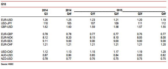 Our forecasts for the AUD and NZD have both been revised lower, in part because of extra efforts locally to engineer a weaker currency. In contrast to other G10 nations, this aspect of the currency war is being driven by the more traditional issue of balance of payments adjustment rather than as a tool to combat deflation. New Zealand’s economy may be improving and further rate hikes are likely in 2015, but we would not fight the central bank’s desire for a softer currency. Australia’s rebalancing is moving slower than they would like, and the RBA will likely continue to counteract AUD rallies with verbal intervention.
