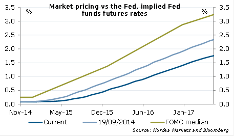 Markets already pricing in clearly less tightening than implied by the FOMC