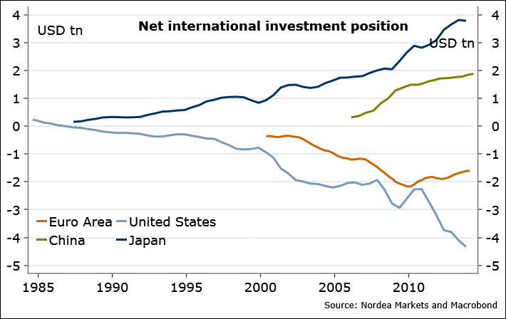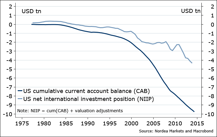 Figure 3. If  not valuation effects, US would own close to USD 10 trillion to foreigners!