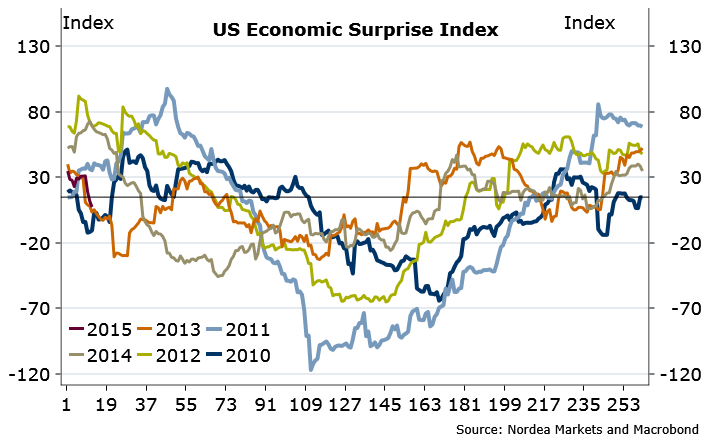 It takes two to tango. What about the US side? Oops. Some data was not as good as expected lately (Figure 4). Hereby the biggest surprise to me: seven years since Lehman… and we still have the same tendency for the US data to be improving in H2, and then surprising on the downside in H1 (Figure 5). This time is different? Meh…